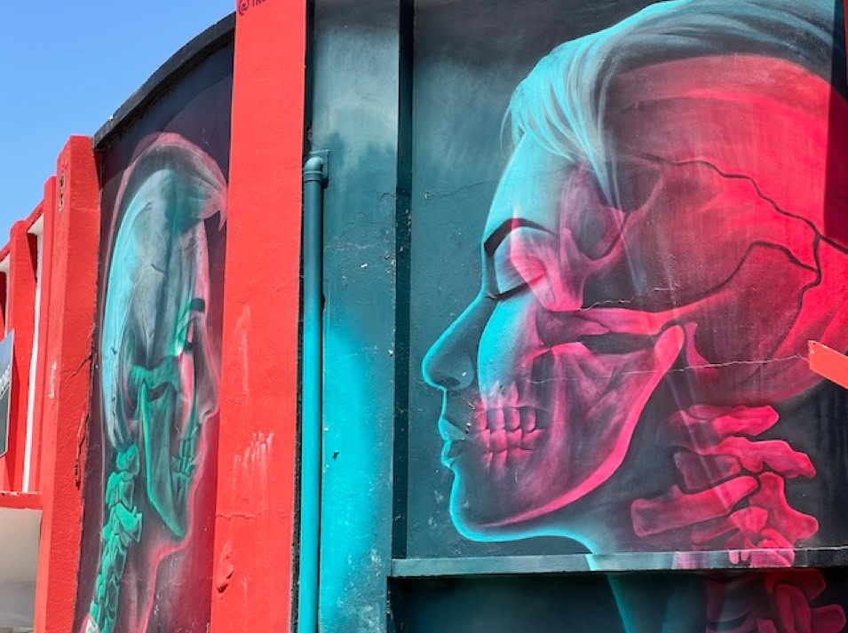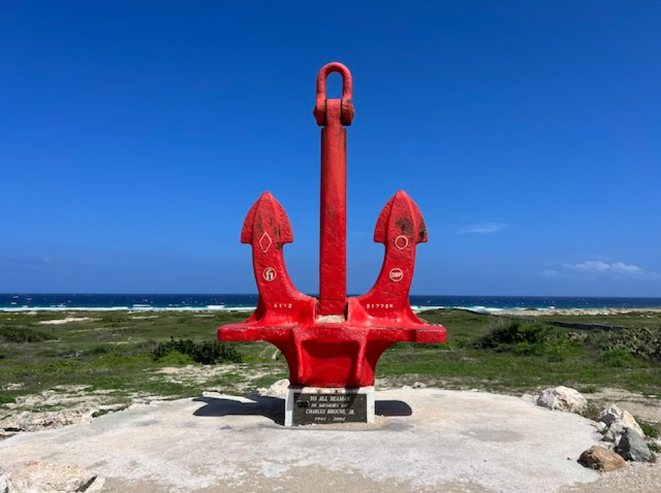 Um auch in die entlegenen Gegenden der Insel zu gelangen, mieten wir uns ein Auto und starten unsere Rundtour erst einmal Richtung Süden. Neben der vielseitigen Straßenkunst in San Nicolas bewundern wir die Landschaft und Strände der Region. Ein riesiger roter Anker steht als Wahrzeichen zum Gedenken an die Seeleute an der Kreuzung und ist wohl eines der beliebtesten Fotomotive hier. Die Gegend ist rau und von riesigen Säulenkakteen geprägt.