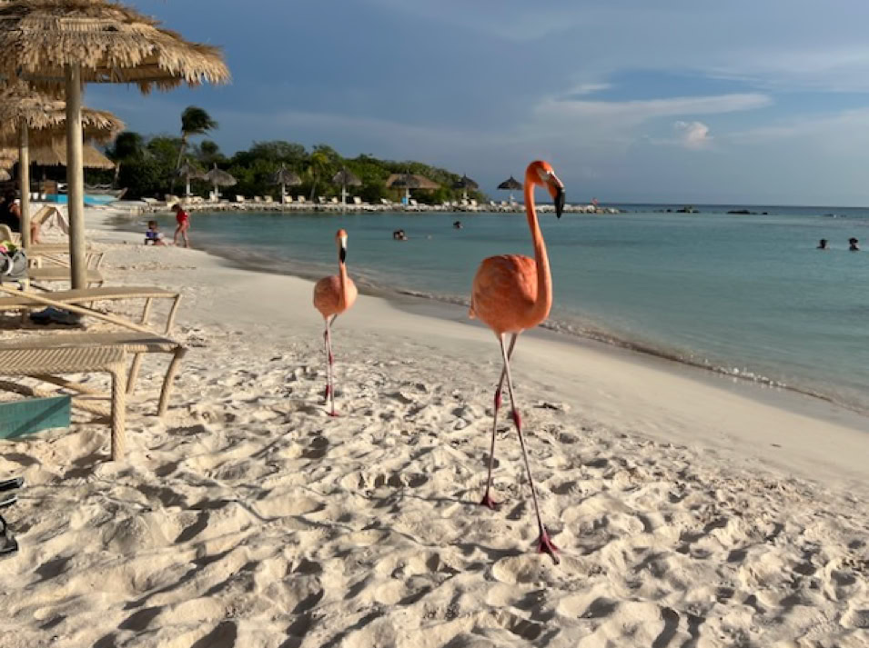 Hier stolzieren Flamingos zwischen den Badegästen, während Leguane gemütlich in der Sonne liegen. Großartig! Das lässt sich aushalten.