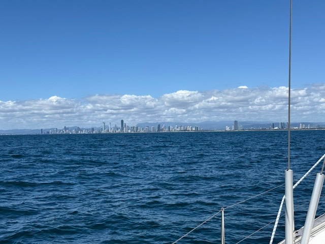 Nach sechs Tagen ist es endlich so weit: Land in Sicht! Australien! Wir steuern die Gold Coast an, und in der Ferne leuchten die langen weißen Sandstrände. Am 6. November gegen 10:30 Uhr legen wir am Q-Dock in Southport an. Geschafft! Biosecurity, Zoll und Einwanderungsbehörde kommen an Bord, und nachdem alle Kontrollen und Formalitäten erledigt sind, dürfen wir das Land betreten.