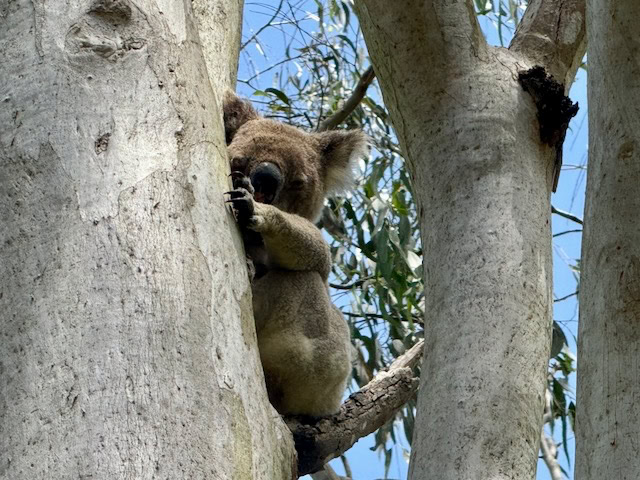 Wir fühlen uns wohl, aber wir wollen nach Sydney. Gewitterfronten und Gegenwind machen eine Weiterfahrt bislang noch unmöglich. Also nutzen wir die Zeit, um die Umgebung weiter zu erkunden. Da wir ja in Australien sind, wollen wir Koalas und Kängurus sehen. Mit Bus und Straßenbahn fahren wir in den Coombabah Lakelands Park, wo die Chancen groß sind, die Tiere in ihrem natürlichen Lebensraum zu entdecken. Unsere Erwartungen werden erfüllt. Das erste Känguru lässt nicht lange auf sich warten. Es beobachtet uns, scheint uns fast zu begrüßen, bis es wieder ins Grüne springt. Der Park ist ein sehr schönes, natürliches Landschaftsgebiet. Wiesen und mystische Waldabschnitte wechseln sich ab. Dann entdecken wir unseren ersten Koala in einem dicken Eukalyptusbaum. Ruhig, fast bewegungslos, sitzt er zwischen den Ästen und blinzelt ab und zu in die Sonne. Etwas später haben wir das Glück, eine Koalamama mit ihrem Kind zu beobachten. Diesmal gibt es sogar ein paar Aktivitäten der beiden. Kängurus grasen auf den Wiesen oder hüpfen vorbei. Welch ein gelungener Tag voller schöner Erlebnisse.