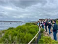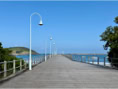 Ein weiteres Highlight ist der Mutton-Berg, auf dem die gleichnamigen Vögel brüten. Wir wandern den schmalen Pfad hinauf und genießen eine bezaubernde Aussicht auf die Bucht und den Hafen, während unter uns die Brandung tobt. Die lange Seebrücke lädt zum Spazieren ein, und auch hier können wir wieder barfuß im Wasser entlang des Strandes laufen. Dabei fallen uns die aufgestellten Rettungssäulen für mögliche Hai-Unfälle auf, was uns Respekt abverlangt.