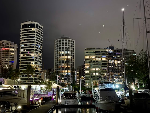 Wir buchen einen Liegeplatz, um auf unserer Manatee klar Schiff zu machen und die Salzkruste des Pazifiks zu entfernen. Ausgeschlafen und erholt sind wir nun bereit, die Umgebung zu erkunden. Die Gold Coast ist eine pulsierende Stadt, in der das Leben überall präsent ist. Zwischen den betriebsamen Straßen finden wir aber viele grüne Oasen und kleine Rückzugsgebiete. Wir freuen uns über die gute Infrastruktur und sind begeistert, dass die Lebensmittelpreise im Vergleich zu Nouméa wieder sehr moderat sind. Selbst einen Aldi gibt es. Unsere Manatee liegt in der Southport Marina, und um in die Stadt oder zu den großen Supermärkten zu gelangen, überqueren wir die lange Sundale Bridge. Dabei genießen wir den Blick auf den Nerang River und die vielen Boote, die hier unterwegs sind.