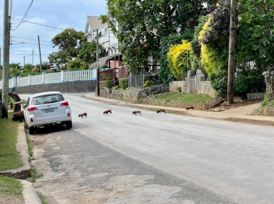 Der letzte Tag im Südseeparadies entpuppt sich als ausgesprochener Weltuntergangstag. Der Himmel öffnet sämtliche Schleusen. Es schüttet, blitzt und donnert. Um uns herum schwimmen Baumstämme aus dem Flussbett. Das Wasser hat die braune Färbung von Schlamm.