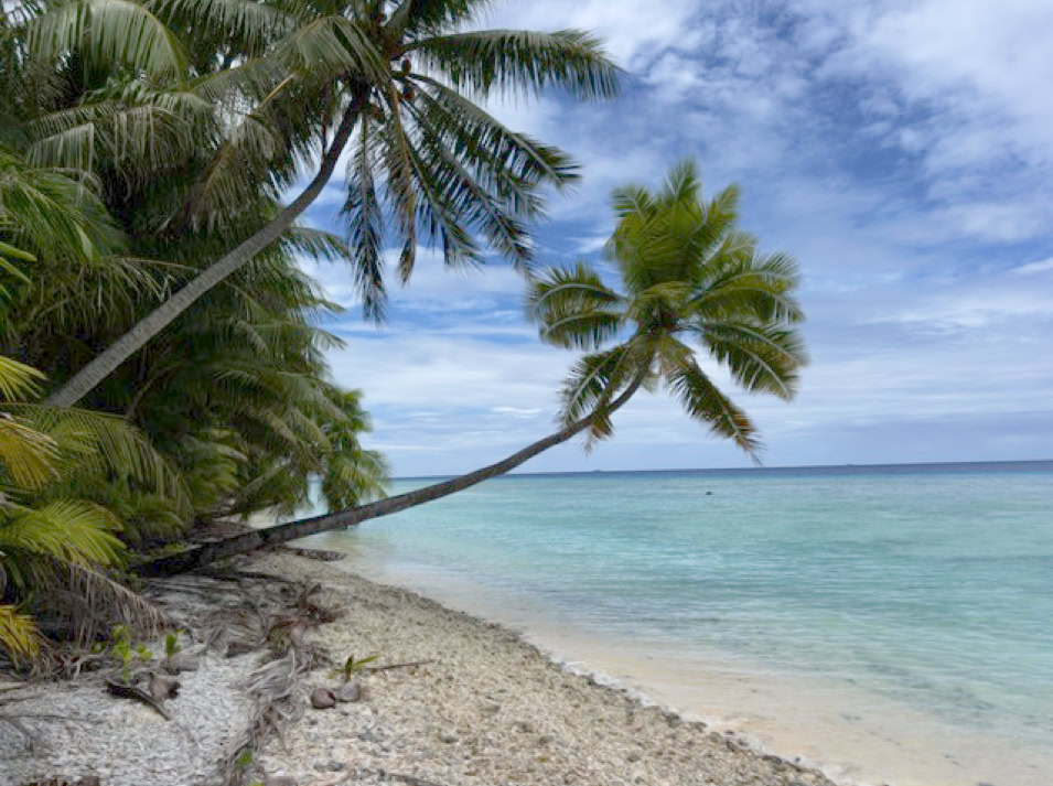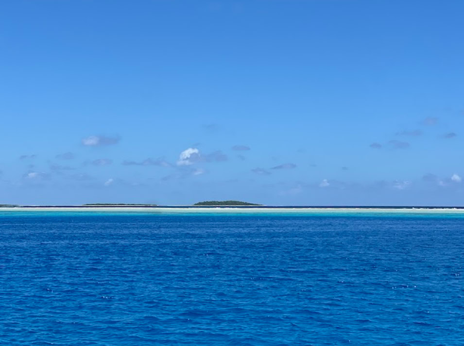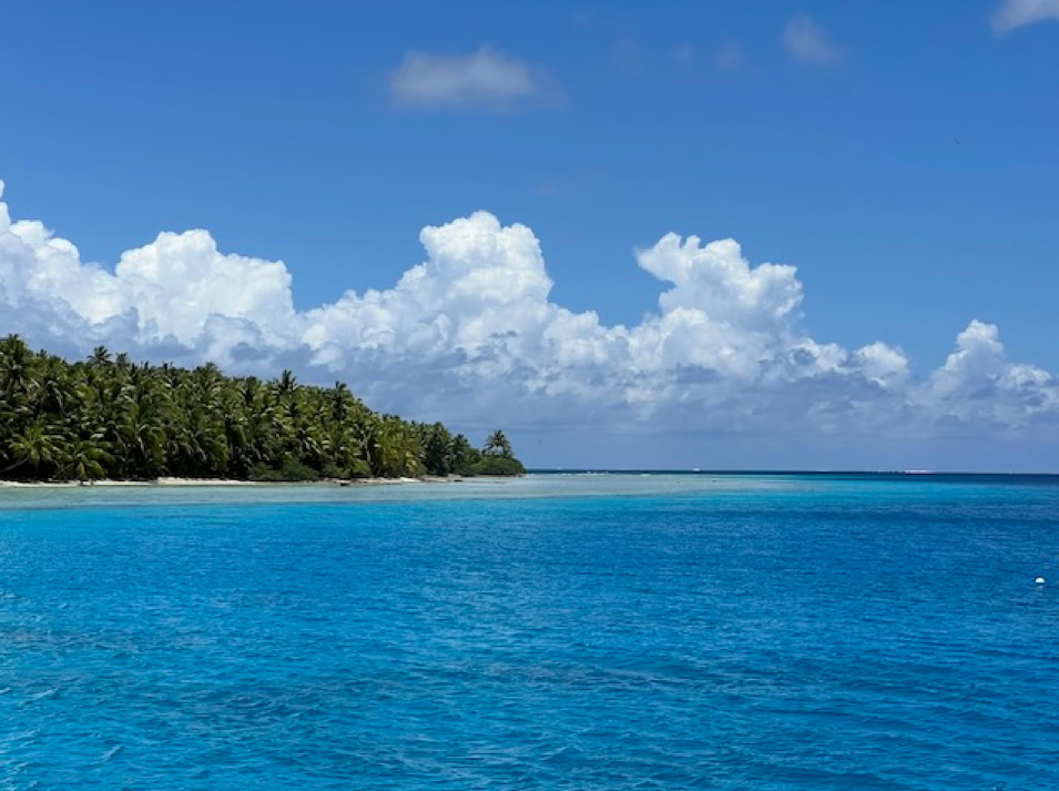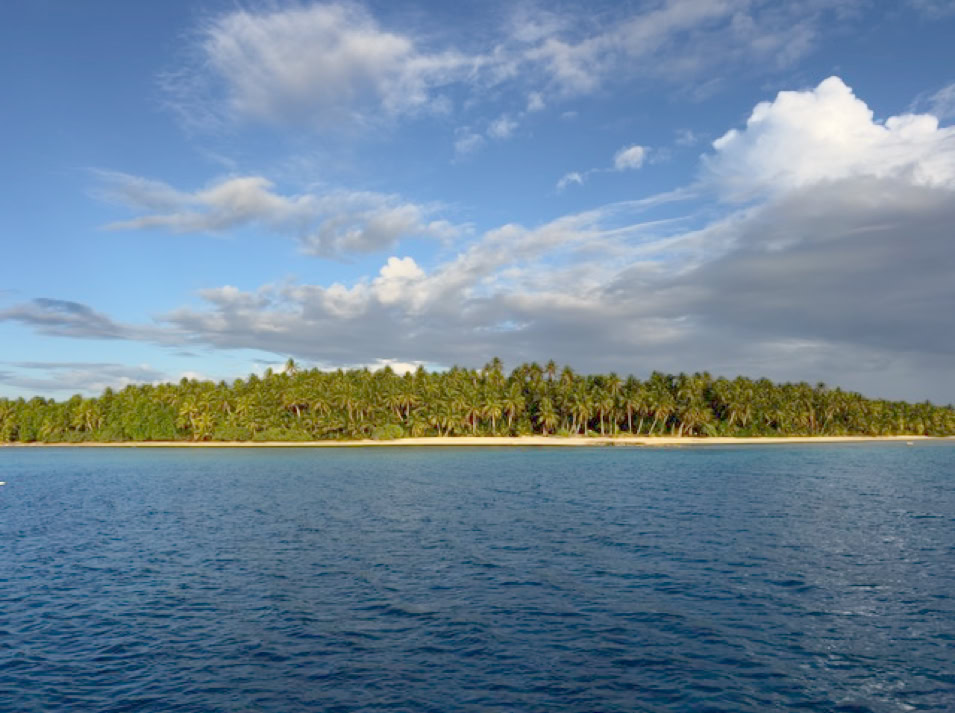 Nach sieben Tagen ist Land in Sicht, und wir fahren durch die Einfahrt des Atolls.