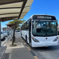 Um in die Hauptstadt zu gelangen, nehmen wir den Bus. Die Bushalte befindet sich in unmittelbarer Nähe. Für 2 Antillengulden pro Person, das entspricht ca. 1 Euro, bringt uns der Bus bis zur Endstation in Willemstad.