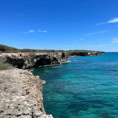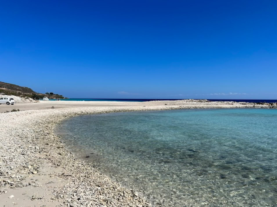 Die Lagune wird durch einen schmalen Landstreifen vom offenen Meer getrennt. Wir laufen entlang der dortigen offenen Strände, die etwas steinig sind, dafür aber vom Türkis des Atlantiks gesäumt werden.