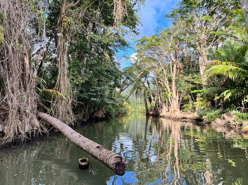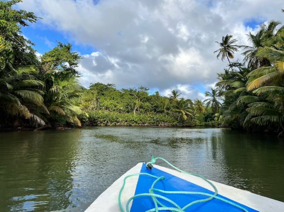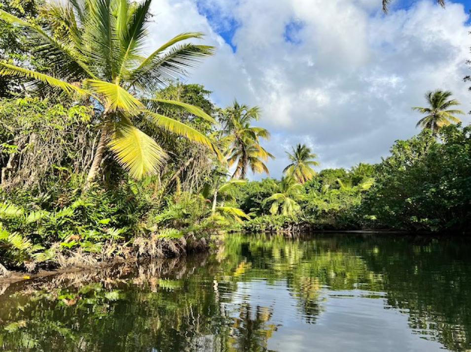 Und auch hier hat sich unsere kleine Segelgemeinschaft zusammengefunden und erweitert. Am Samstagnachmittag lassen wir uns durch den Indian River rudern. Ein wenig wie Spreewald, aber ohne Gurken. Vorbei am Haus der Calypso aus „Fluch der Karibik 2“ geht es durch eine urige Landschaft bis zur Bushbar, in der die Zeit still steht. Wir spazieren durch den kleinen botanischen Garten und probieren eines der Rumgetränke der Bar.