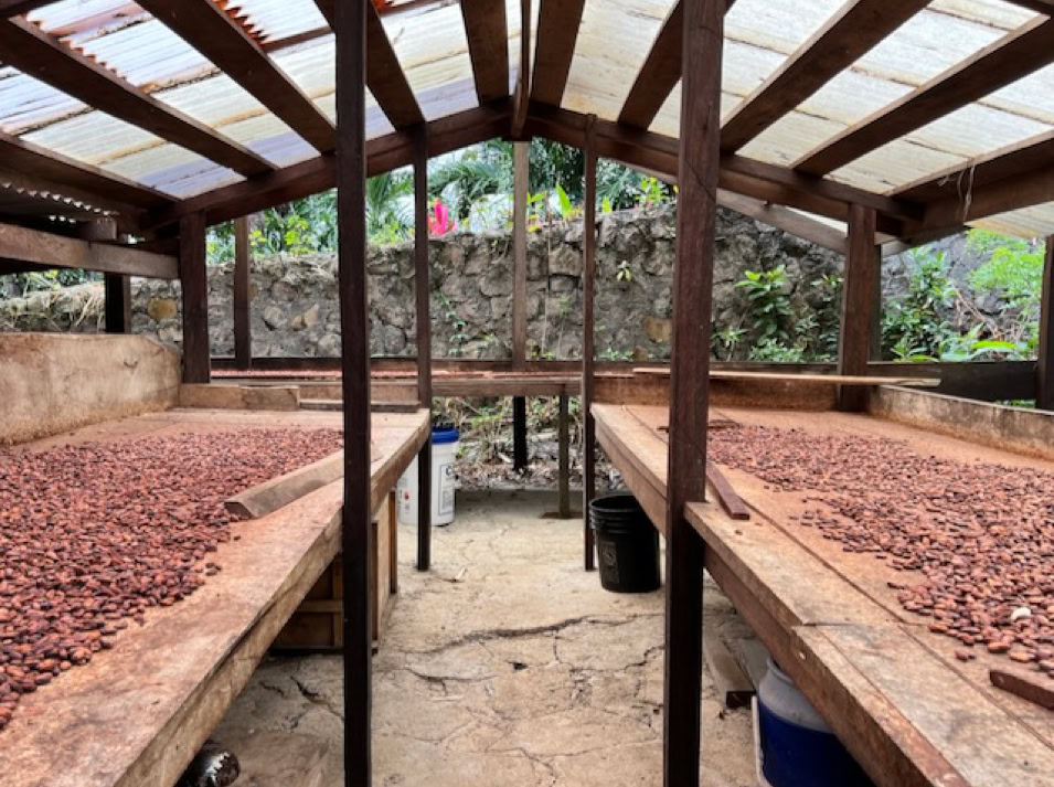 Der darauffolgende Stopp ist dann deutlich angenehmer. In der kleinen Schokoladenfabrik Pointe Baptiste wird uns die Herstellung des süßen Genusses gezeigt. Hier duftet es nach gerösteten Kakao. Es ist sehr interessant. Zum Abschluss kosten wir verschiedene Sorten und kaufen uns ein paar der Glücklichmacher.