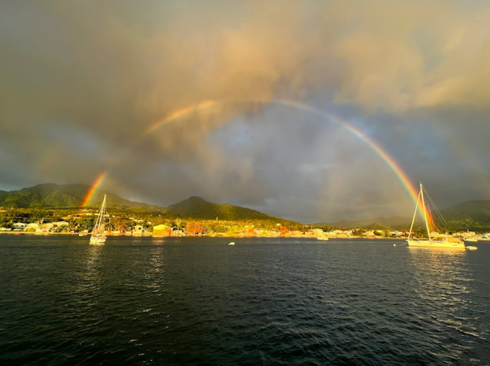 Saint-Pierre, Martinique. Wir nutzen die frühen Morgenstunden, lichten den Anker und machen uns auf den Weg. Sonne und halber Wind schieben unsere Manatee gut voran. Es ist schön, wieder auf dem Wasser unterwegs zu sein. Am frühen Nachmittag sind wir schon an unserem Ziel. Über Funk melden wir uns an, um an einer Boje in Roseau Dominica festzumachen. Ein Segelfreund erwartet uns bereits, die nächsten folgen und wir freuen uns alle über unser Wiedersehen.