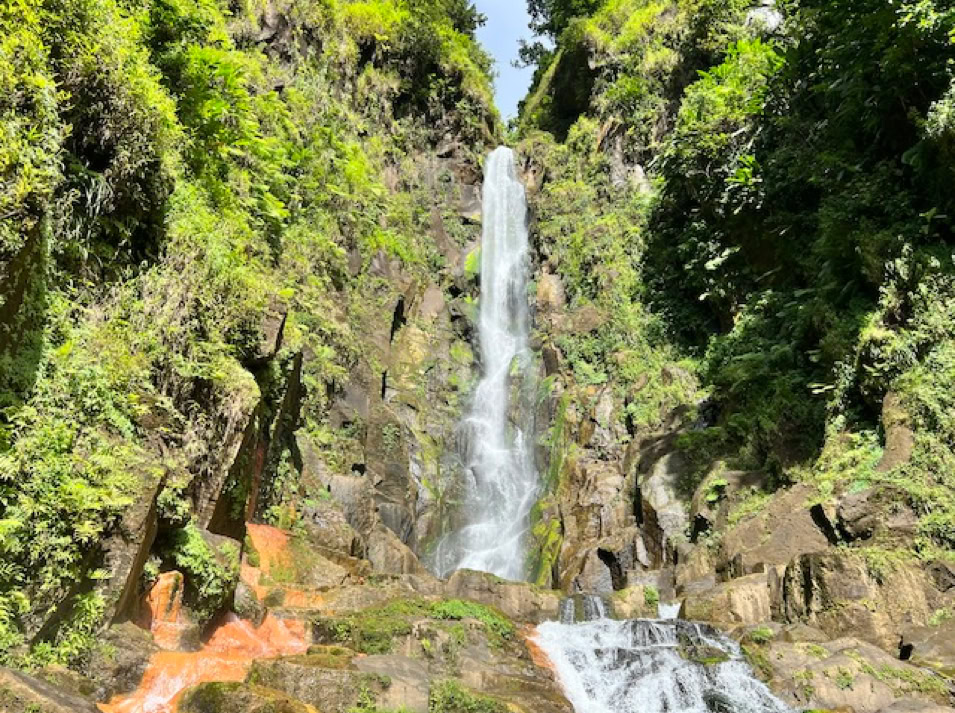 Die Landschaft ist fantastisch. Nach einem Lunch mit Blick auf viel Grün geht es zum nächsten Ziel, den Trafalgar Falls. Wow! Zwei Wasserfälle rauschen nebeneinander den Felsen herab. Nach ausgiebiger Bewunderung und den dazugehörenden Fotos heißt es nun für uns - klettern. Unser Guide zeigt uns den begehbaren Pfad und hilft uns, das Ziel zu erreichen. Oben angekommen, können wir uns mit einem Bad im Pool des Wasserfalls belohnen. Nach dem Gekraxel bergab sind wir froh, wieder festen Boden unter uns zu haben. Aber ein beeindruckendes Erlebnis.
