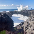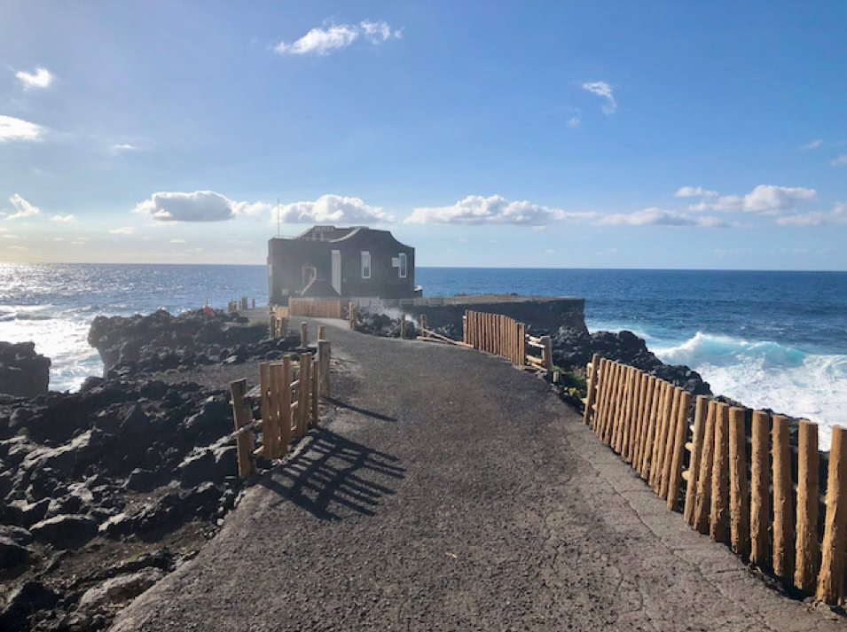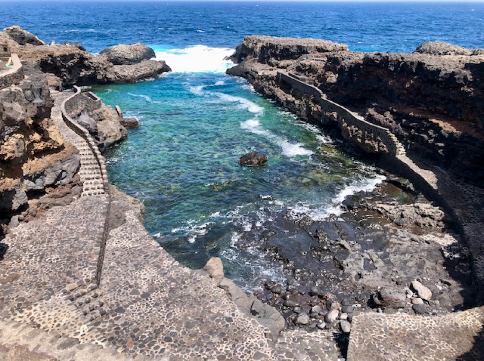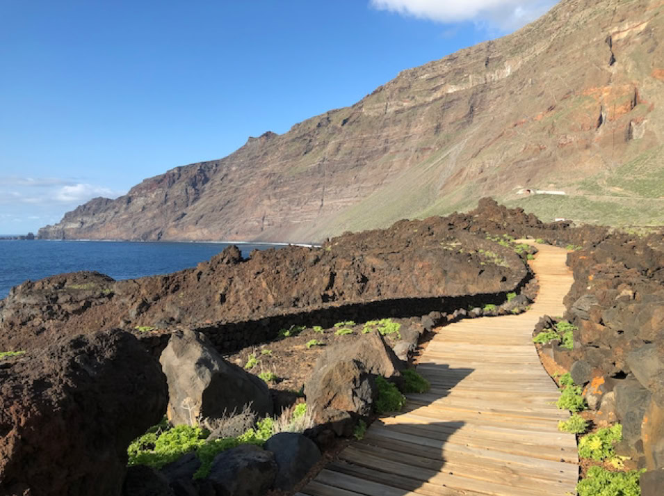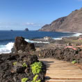 Der Küstenweg von Las Puntas lädt uns zum Spaziergang ein und so laufen wir über den mit Bohlen ausgelegten Weg durch die vulkangeprägte Landschaft, lauschen der Brandung und bewundern die Felsformationen am Ufer.