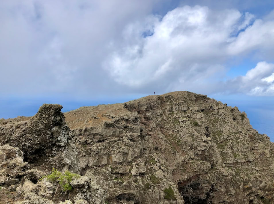Auf dem höchsten Punkt der Insel, dem Pica Malpaso stehen wir in eine dicke Wolkendecke eingehüllt auf 1501Metern und sehen außer besagten Wolken leider nichts.