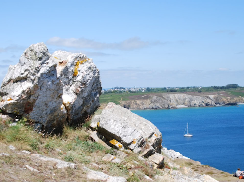 Da der Hafen voll aussieht, verbringen wir unsere erste Nacht vor Anker in Camaret-Sur-Mer. Am Morgen leert sich dieser. Wir verholen uns längsseits am Steg und erkunden den Ort und Umgebung mit den Fahrrädern. Auf dem Pointe de Pen-Hir erwartet uns eine fantastische Aussicht und auch der Steinkreis von Lagatjar ist beeindruckend. Es kommen gleich Erinnerungen an die Hinkelsteine von Asterix und Obelix auf. Ansonsten laden wunderschöne Strände, kleine Restaurants und weitere Sehenswürdigkeiten ein, hier zu verweilen.
