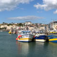 Der alte Hafen im Ort fällt bei Ebbe trocken und bietet uns ein interessantes Bild der dort festsitzenden Boote.
