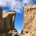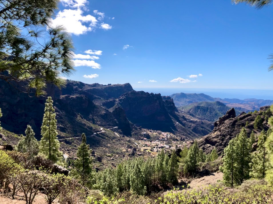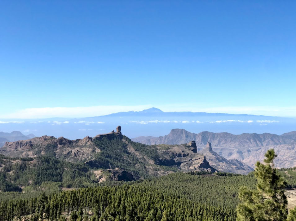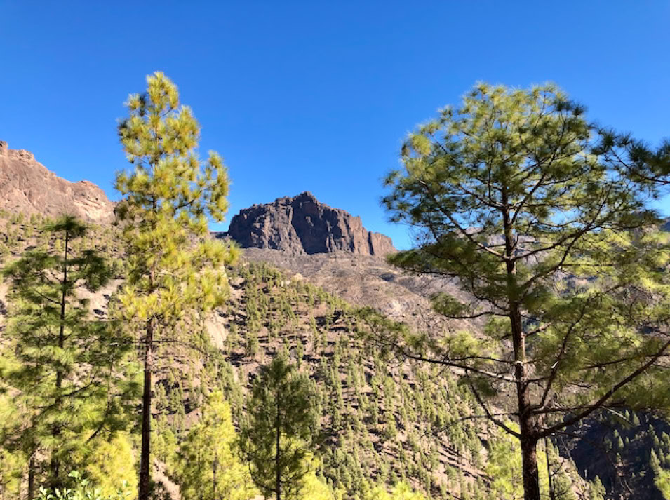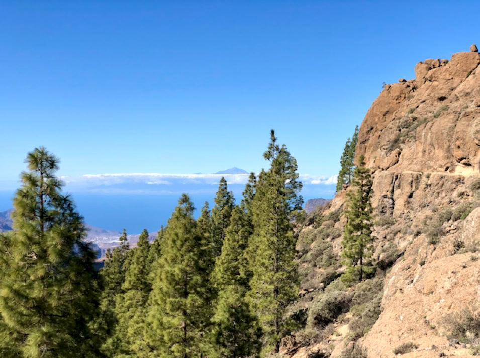 Unbedingt empfehlenswert ist die Inselmitte. Auf schmalen Serpentinenstraßen geht es hinauf in die Berge. Immer wieder unterbrechen wir unsere Fahrt, um die atemberaubende Ausblicke genießen. Den Rest laufen wir durch den duftenden Pinienwald bis zum Roque de Nublo mit seinen großen Steinmonolithen. Die Aussicht ist grandios und wir blicken hinüber zum wolkenumhangenen Teide auf Teneriffa. Dieses Erlebnis lässt uns zum Wiederholungstäter werden und wir schauen vom benachbarten Berg den Pico de las Nieves auf Täler und die umliegenden Berge.