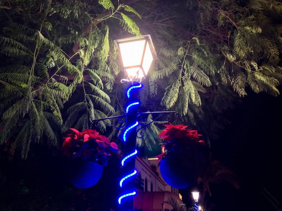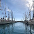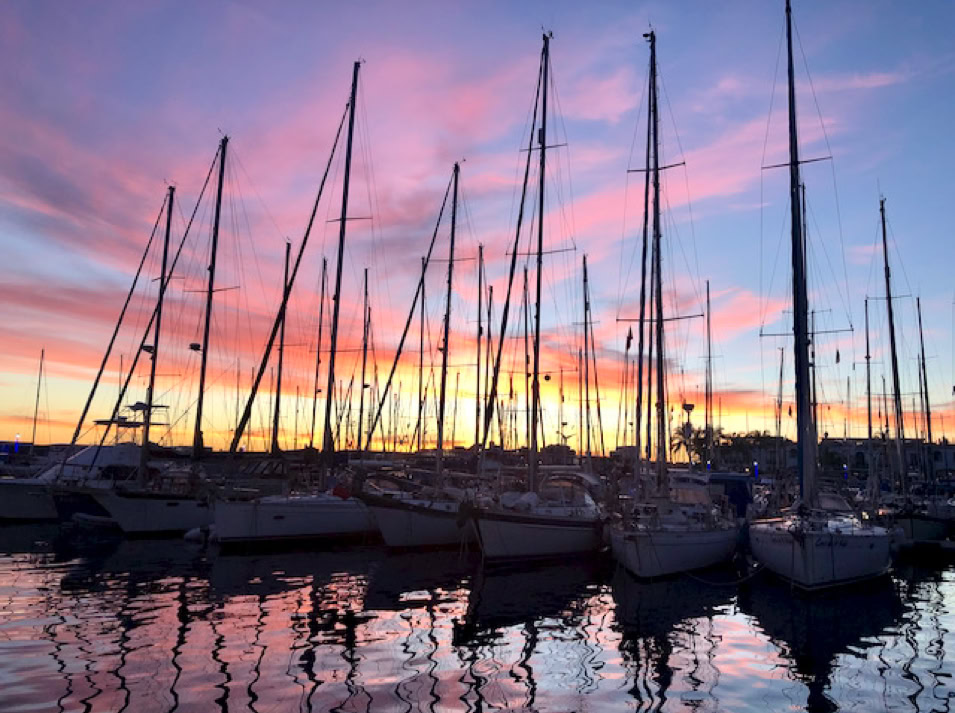 Die Anmeldung über Funk ist schnell erledigt und wir machen am zugewiesenen Stellplatz fest. Wir sind begeistert. Unser Platz ist ganz außen am Steg und wir können vom Cockpit auf die Hafenausfahrt samt Bucht schauen. Der Turm der Hafenanlage ist bereits mit Lichterketten für die Weihnachtszeit dekoriert und leuchtet uns am Abend entgegen.