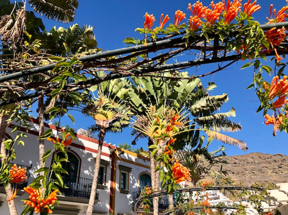 Puerto de Mogan, ein kleiner Urlauberort begeistert vor allem mit seinen Blumen in den Gassen, den bunten kleinen Häusern und dem zentralen Hafen, welcher von kleinen Restaurants und Bars umsäumt ist..