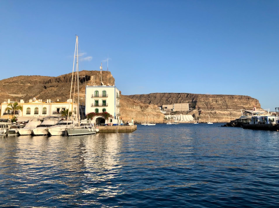 Am nächsten Morgen geht es wieder raus auf den Atlantik. Wind kommt auf und wir segeln an den vielen Hotelanlagen vorbei gen Süden bis zum Playa de Meloneras und verbringen eine unruhige Nacht. Nach diesen ordentlichem Geschaukel am Anker steht nur noch die kleine Etappe bis zu unserem Zielhafen Puerto de Mogan auf dem Plan.