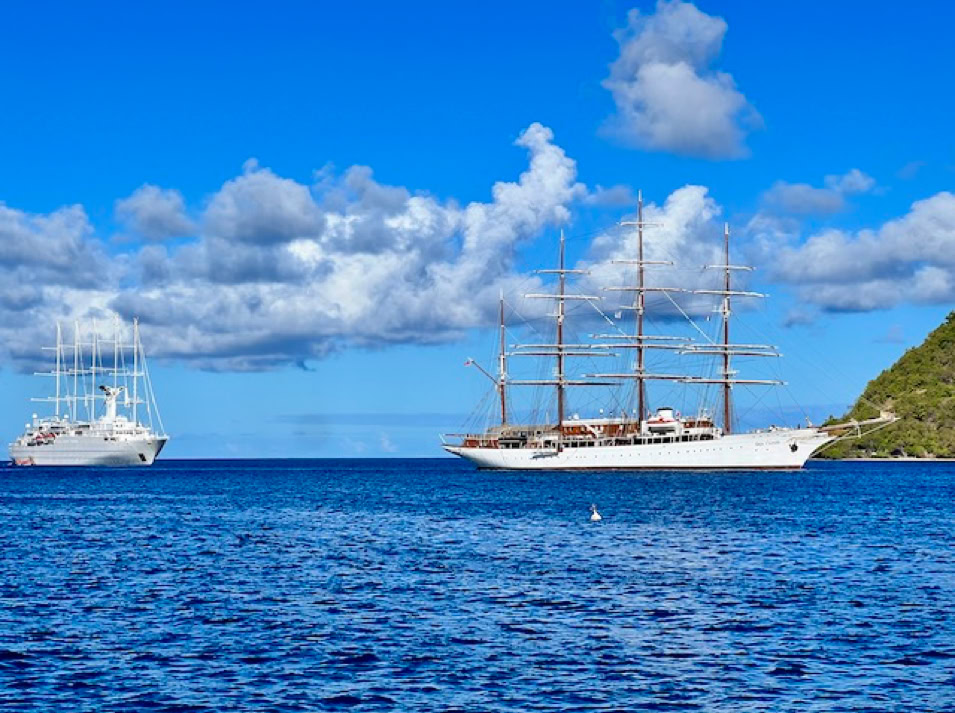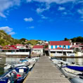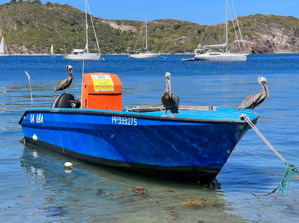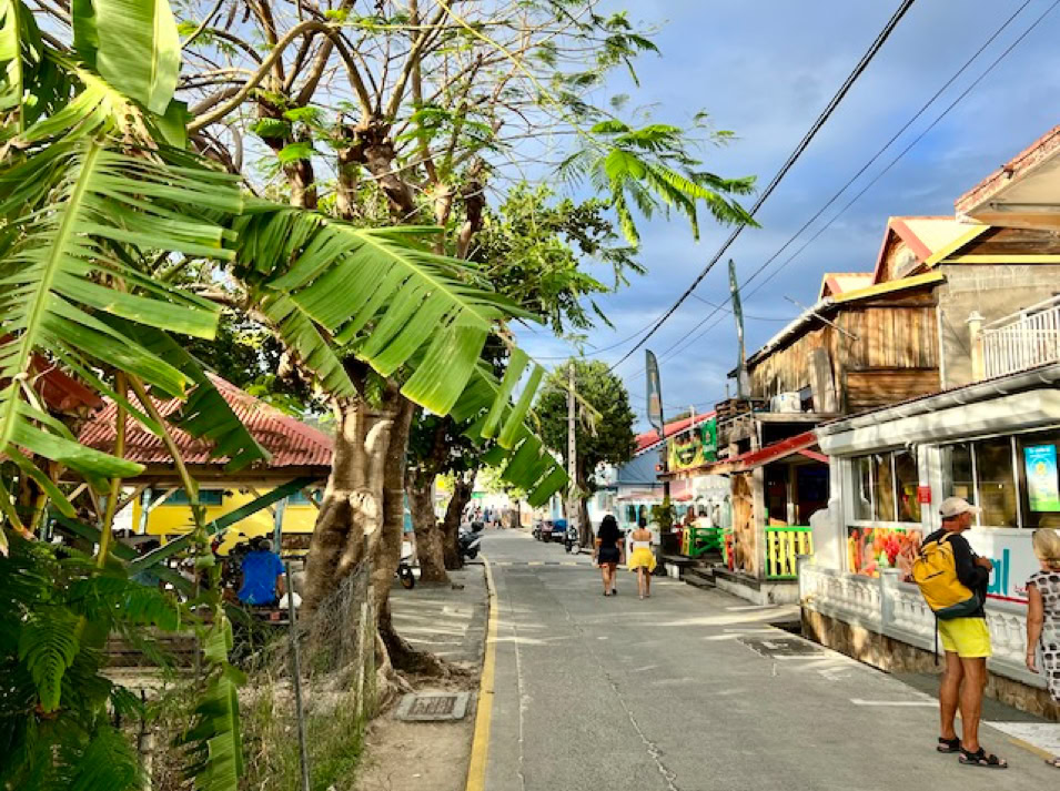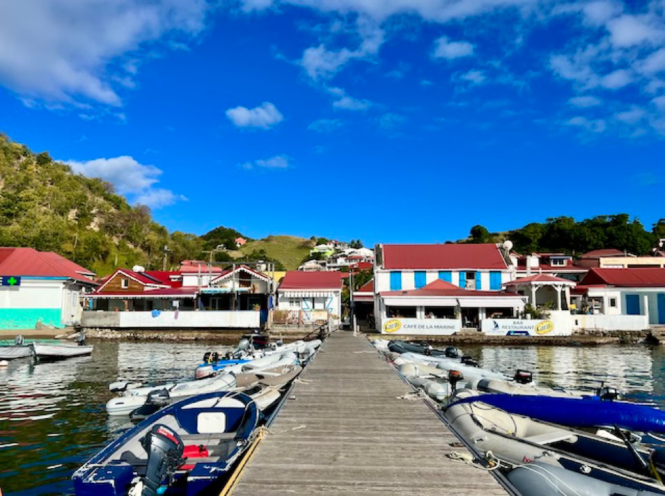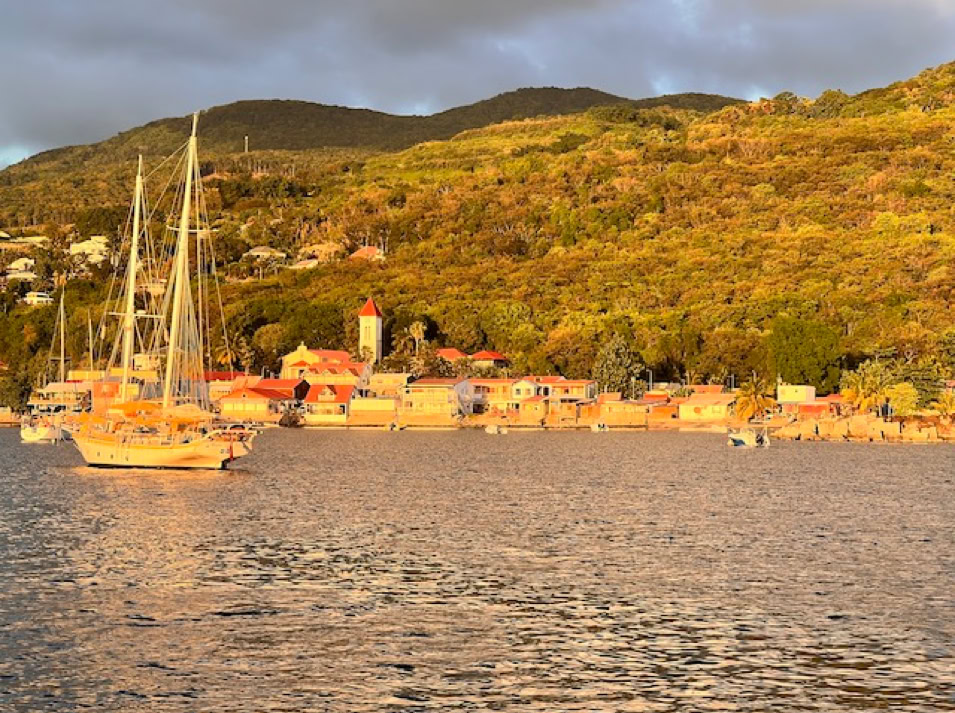 Die Anmeldeformalitäten sind schnell erledigt und wir können unsere Umgebung erobern. Der kleine Ort der Insel ist ein typisches Urlaubsdomizil. Mehrmals täglich bringen die Fähren Besucher von Guadeloupe in die Saintes. Auch Kreuzfahrtschiffe wie die Royal Clipper oder die Seacloud halten regelmäßig zwischen den Inseln und beleben mit ihren Gästen die Straßen.