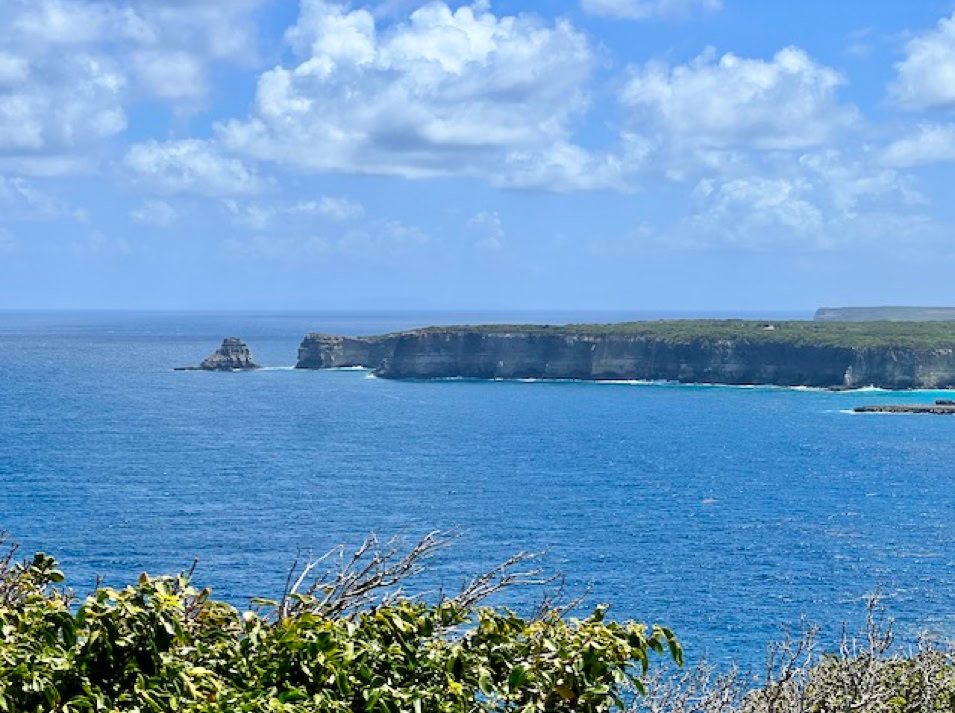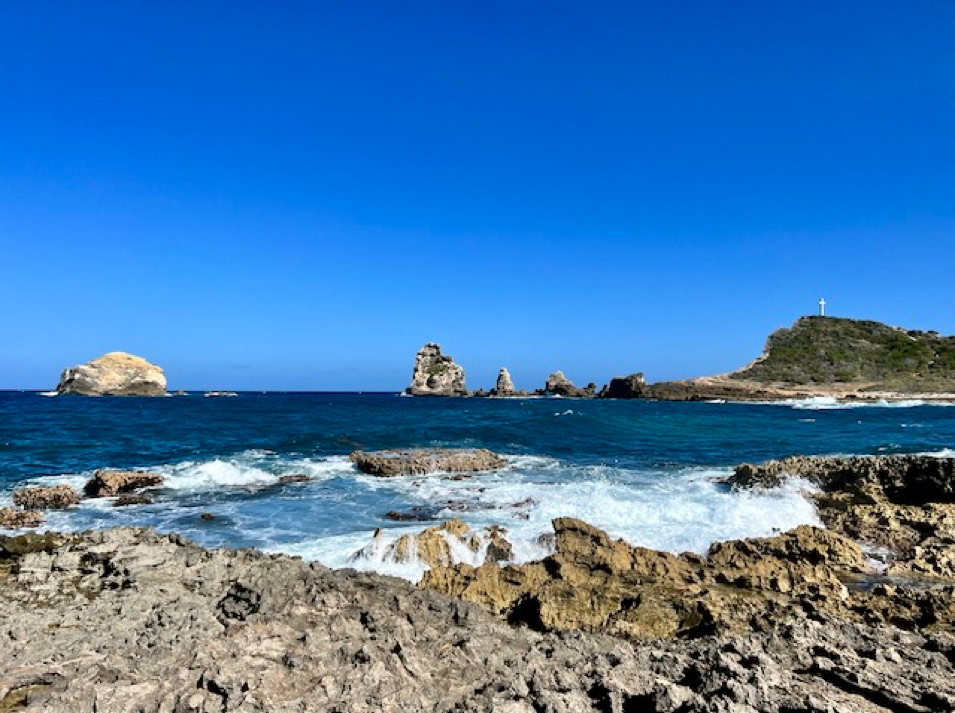 Leider sind die meisten schönen Strände Guadeloupes in diesem Jahr mit riesigen Teppichen an Braunalgen überschwemmt, also fallen unsere Strandspaziergänge nur kurz aus. Dafür lassen wir uns am nördlichsten Punkt, dem Pointe de la Grande Vigi, den Wind um die Nase wehen, essen Fisch in einem lokalen Restaurant, fahren an riesigen Zuckerrohrplantagen vorbei bis zum östlichsten Punkt dem Pointe des Châteaux auf Guadeloupe, wo der Atlantik und das karibische Meer aufeinander treffen. Einfach schön.