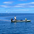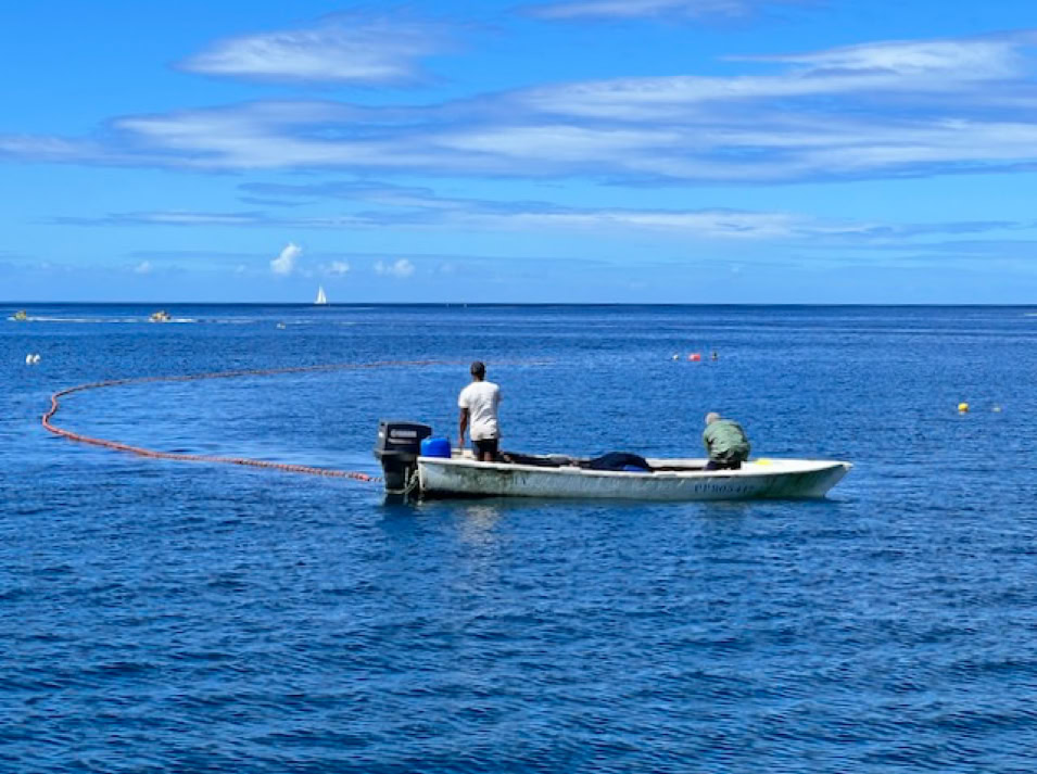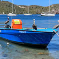 Endlich ist es soweit. Wir fahren mit dem Dingi zu den kleinen Inseln, bewaffnen uns mit Flossen, Taucherbrille und Schnorchel und schwimmen über Korallen und bunten Fischen hinweg. In einer Tiefe von etwas mehr als 10 Metern entdecken wir auch die Büste von Jaques Cousteau, der dieses Reservat schützen ließ.