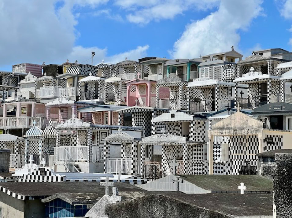 Der Besuch des Friedhofs in Morne-à-l’eau ist mal etwas anderes und sollte man gesehen haben. Kleine villenähnliche Gebäude im Schachbrettmustern reihen sich den Hang herab. Fast wie in einem Theater.