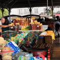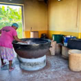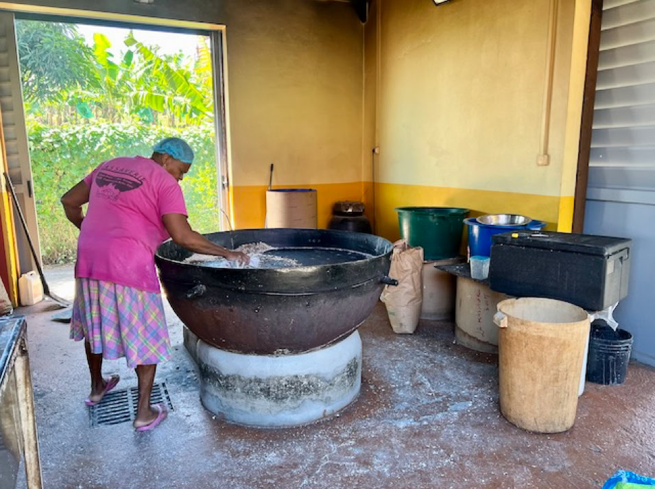 Wir beginnen unsere Rundfahrt mit einem Stopp an einer kleinen Kassaverie, wo aus Maniokmehl, einer Kartoffelart, traditionelle Fladen gebacken werden. Natürlich lassen wir es uns nicht nehmen, eine Kostprobe zu kaufen und als kleinen Imbiss zu verzehren. Das Gebäck ist zwar etwas trocken, schmeckt aber ganz gut.