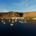 Normalerweise ist Tarrafal bekannt für seine Fallwinde, die den Berg herunter rauschen und die Boote ordentlich schaukeln lassen. Während unseres einwöchigen Aufenthalts haben wir Glück. Bis auf eine Nacht ist es ruhig. Also darf sogar die Drohne mal über das Ankerfeld kreisen und Impressionen einfangen.