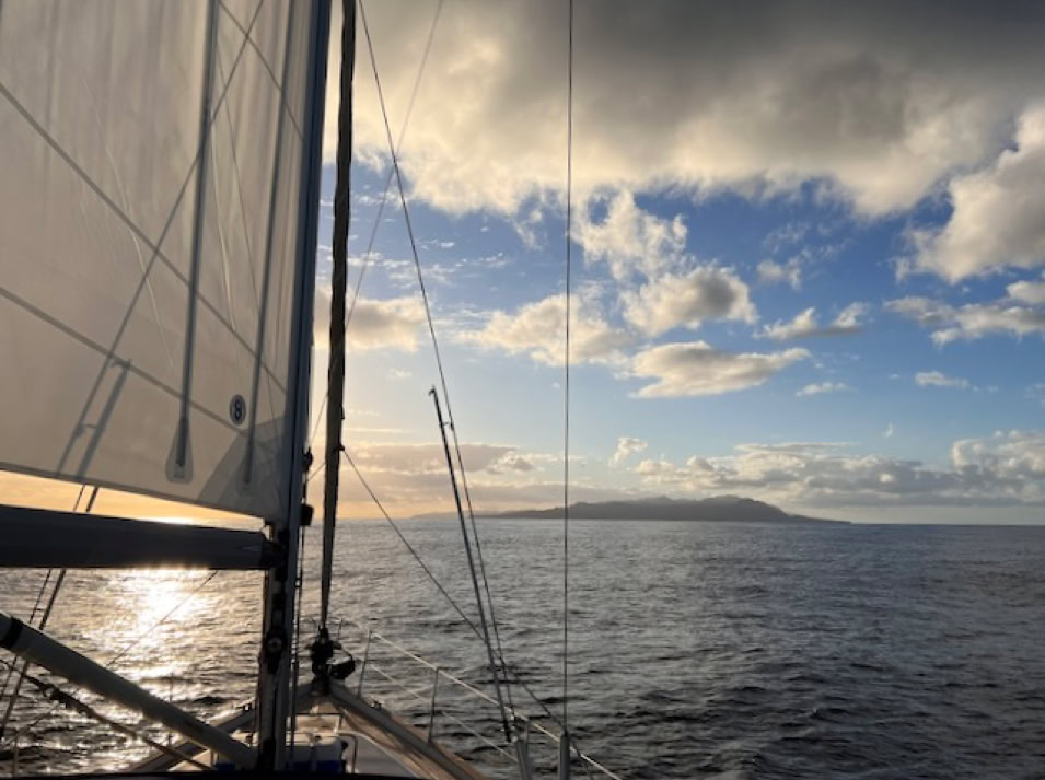 Es ist Samstag, der 03. Dezember, der Wecker klingelt um 6:30 Uhr. Wir machen uns auf den Weg zur Insel São Nicolau. Leider lässt uns der Wind etwas hängen und so muss der Motor unser Vorwärtskommen unterstützen. Backbord voraus sichten wir den Blas eines Wales. Es ist zwar ein spannendes Naturerlebnis, dennoch freuen wir uns, dass er weit genug entfernt ist und weiter zieht.
