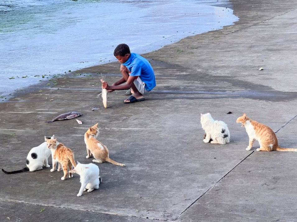 Die Acht Uhr Fähre bringt uns am Morgen nach einstündiger Fahrt nach Porto Novo. Dort empfängt uns unser Fahrer Calu, der uns seine Insel zeigen wird.