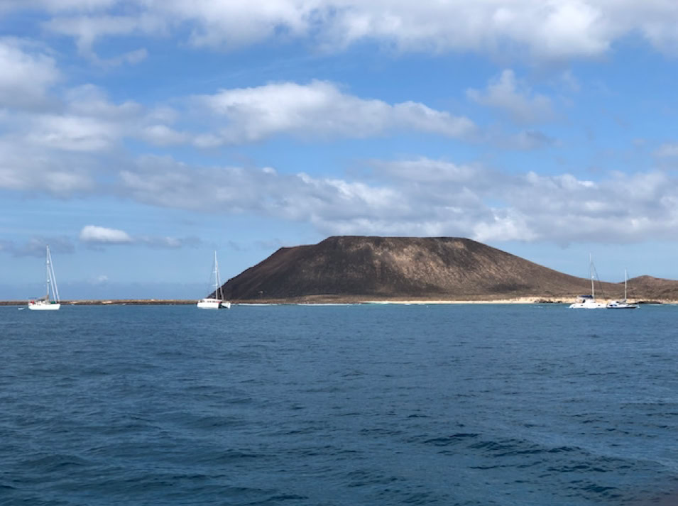 Zwischendurch zieht es uns auf das Wasser. Wind und Wetter sind perfekt und wir segeln um die gegenüberliegende Isla de Lobos, lassen uns den Wind um die Nase wehen und freuen uns über die Farben des Wassers.