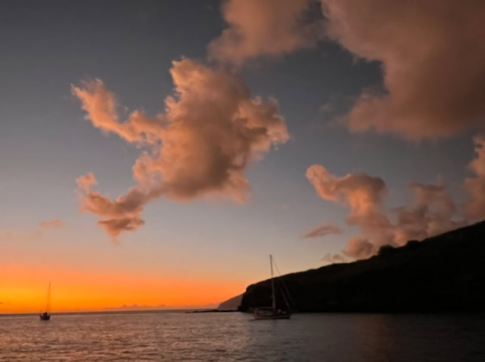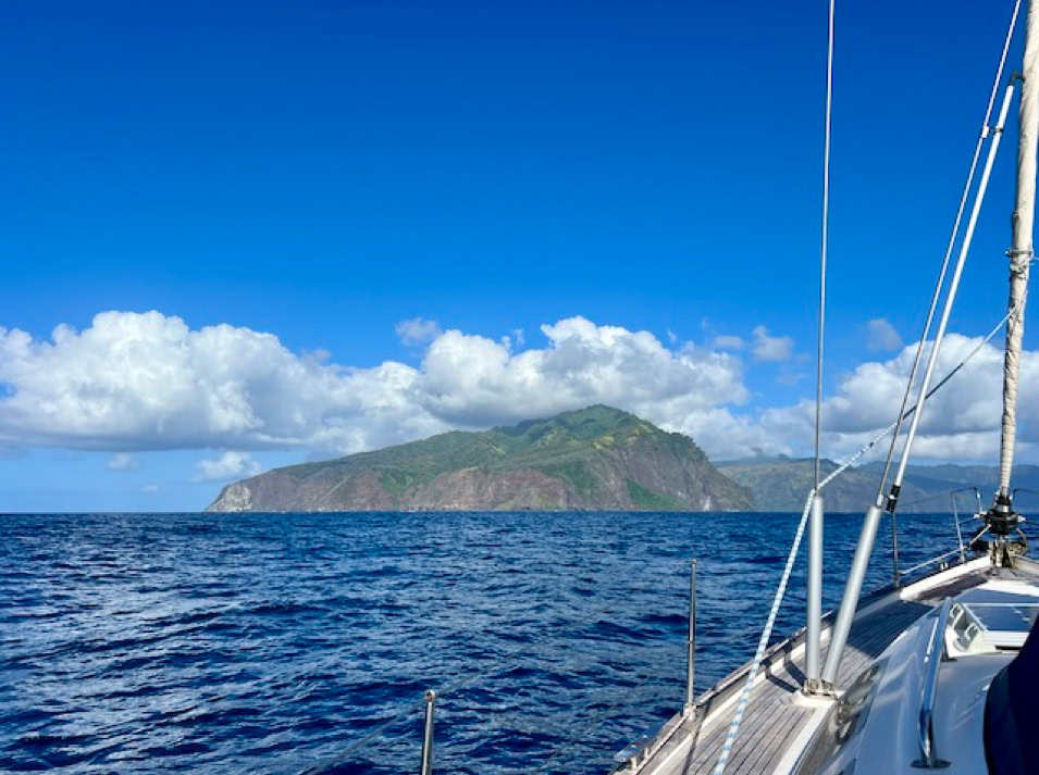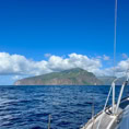 Das Ankerfeld ist klein, doch wir finden ein gutes Plätzchen und genießen erst einmal den Anblick. So viel Grün, Hähne krähen und es riecht nach Land. Der gegenüberliegende Berg erinnert uns an den Teide auf Teneriffa, in dessen Gipfel ebenfalls meist eine Wolke hängt. Wir sind begeistert und dann schlafen wir erst einmal richtig aus.