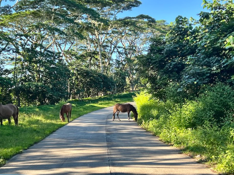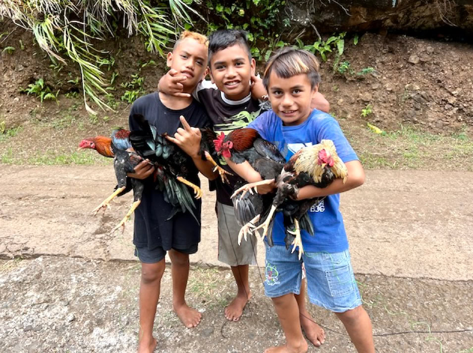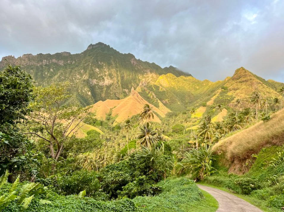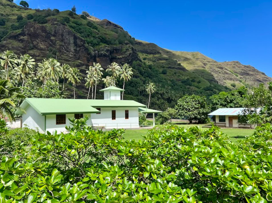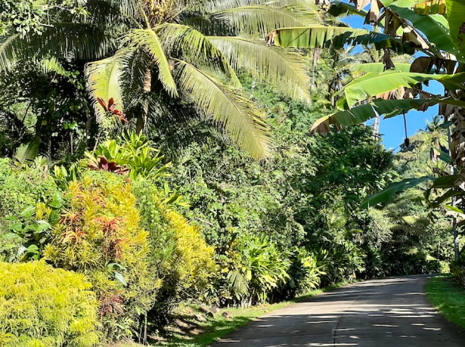 Wir wollen endlich alles erkunden und fahren mit dem Dingi an die kleine Pier, klettern an Land und müssen erst einmal die Muskeln unserer Seglerbeine aktivieren. Das Laufen fühlt sich ungewohnt und doch so großartig an. Es geht leicht bergauf immer die Straße entlang bis zu den den ca. 3 km entfernten Ort Atuoa. Nach unserem Aufenthalt in Panama fällt uns sofort auf, dass hier kein Müll herumliegt und alles sehr gepflegt ist. Das passt natürlich zu dieser wunderschönen Natur.