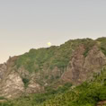 Am Abend werden wir entschädigt. Während im Westen die Sonne sanft in das Meer taucht, lässt sich ein fast voller Mond über dem Berg blicken. Ein gelungener Abschluss des Tages und ein schöner Start in den ruhigen Abend.