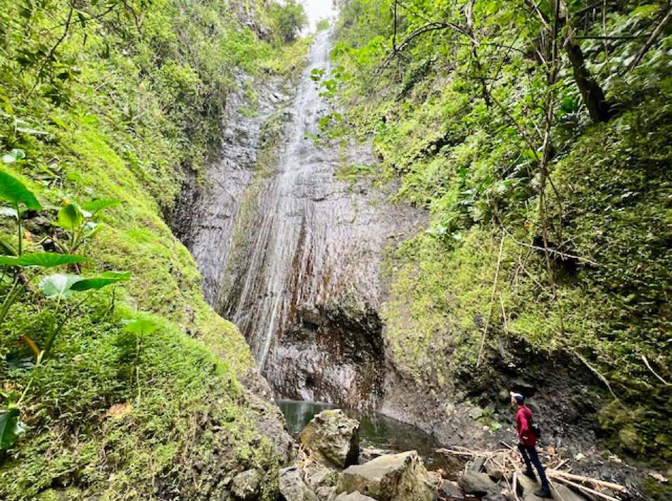 Natürlich dürfen unsere Beine sich wieder bewegen und so marschieren wir die steile Straße zum Kreuz hinauf und werden mit einem super Ausblick auf die Bucht belohnt. Auch die kleine Wanderung zum Wasserfall lohnt sich, um diese einzigartige Natur zu erleben.