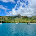 Segelfreunde berichten von der traumhaften Bucht auf der Nachbarinsel Tahuata. Dort kann man sogar mit Rochen schwimmen. Also wird unser zweiter Anlaufpunkt Tahuata. Eine wunderschöne Ankerbucht, gesäumt von weißem Strand, Palmen und türkisblauem Wasser wird für die nächsten Tage unser zu Hause. Wir baden, schnorcheln und schwimmen hier wirklich mit den beeindruckenden Mantarochen, welche majestätisch im Wasser schweben oder auch planschend auf sich aufmerksam machen. Ein fantastisches Erlebnis!