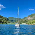 Eigentlich wollten wir anschließend in den Norden der Marquesas. Doch der Wind ist günstig und weht uns in die andere Richtung in den Süden nach Fatu Hiva. Unterwegs tummeln sich Delfine um unsere Manatee und wir freuen uns über die Begleitung.