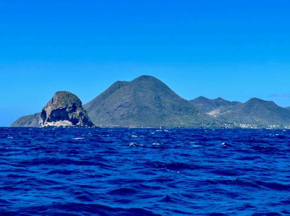 Am 13. Februar lichten wir den Anker, das Wetter ist perfekt und so ziehen wir mit vielen anderen Seglern gen Norden. Der Diamant, ein großer Felsen, ragt aus dem Wasser und zeigt sich mit seinen vielen Facetten. Bevor es aber zur nächsten Insel geht, stoppen wir noch einmal in Sainte Pierre und genießen einen wunderschönen Sonnenuntergang.