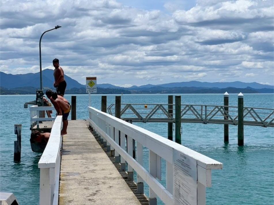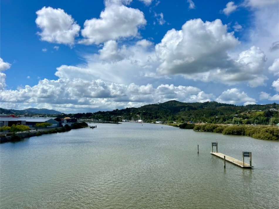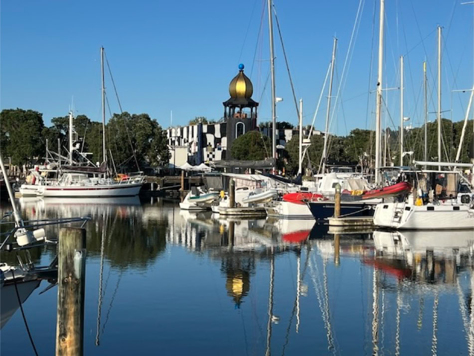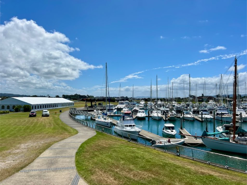 Es ist Zeit, unsere Umgebung näher zu erkunden. Wir entdecken wichtige Gewerke für Bootsarbeiten und haben den Pak'nSave, einen günstigen Supermarkt, gleich um die Ecke. Kleine Restaurants und Museen reihen sich am Ufer der Marina. Die goldene Kuppel des Hundertwassergebäudes steht im Zentrum, und das lustige Metallmännchen der Rolling Ball Clock strampelt eifrig, um uns die Zeit anzuzeigen. Rund um den Hatea-Fluss führt ein ca. 4 km langer Rundweg, vorbei an einladenden Spielplätzen, Fitnessgeräten, Kunstobjekten, Sitzgelegenheiten und grüner Natur. Dieser Loop wird von Einheimischen, Besuchern und natürlich auch von uns intensiv genutzt.