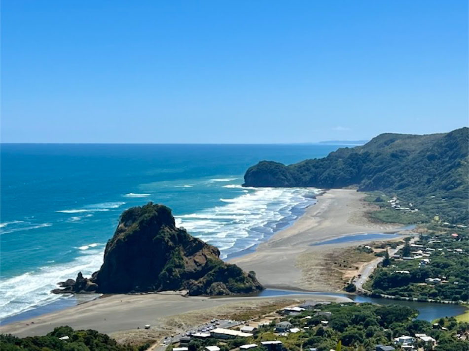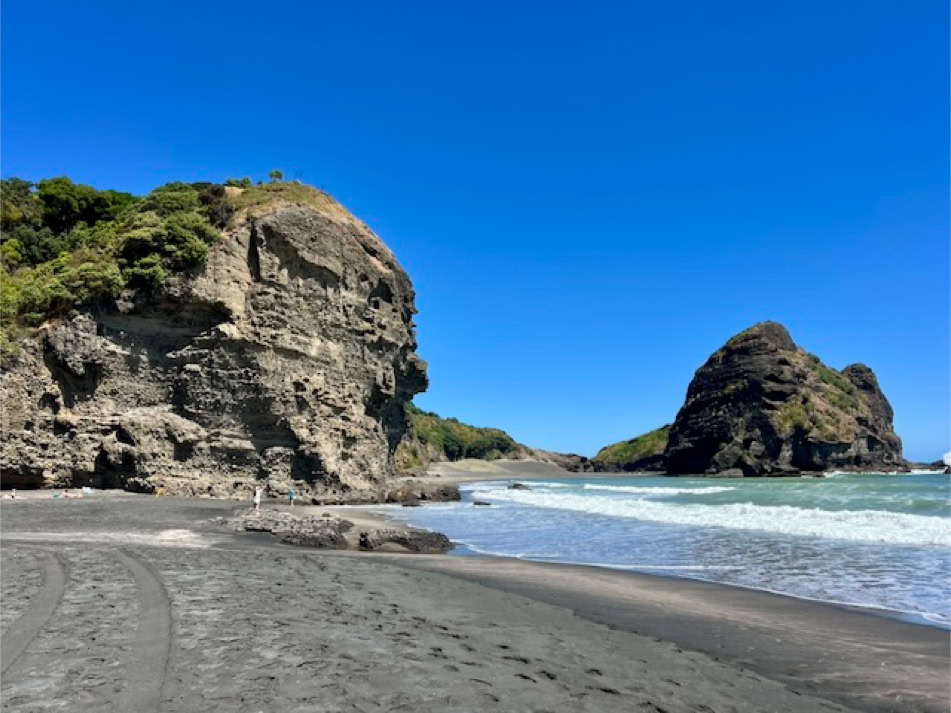 Es geht nach Auckland und hinauf zum Sky Tower. Von dort haben wir eine fantastische Sicht auf die sich weit ausbreitende Stadt. Doch das lange Autofahren macht uns keinen Spaß, und so zieht es uns immer wieder ans Meer. Die salzige Luft, das Rauschen des Meeres und die langen Strände laden zu Spaziergängen ein. Wir beobachten Oystercatcher mit ihren langen Schnäbeln, sehen den Seeschwalben, Möwen und Surfern zu. Sogar Delfine entdecken wir in der Ferne, und ein Rochen ruht sich an einem Stein aus. Die Strände sind nie überfüllt, und an den Ufern stehen knorrige Bäume und bizarre Felsen.
