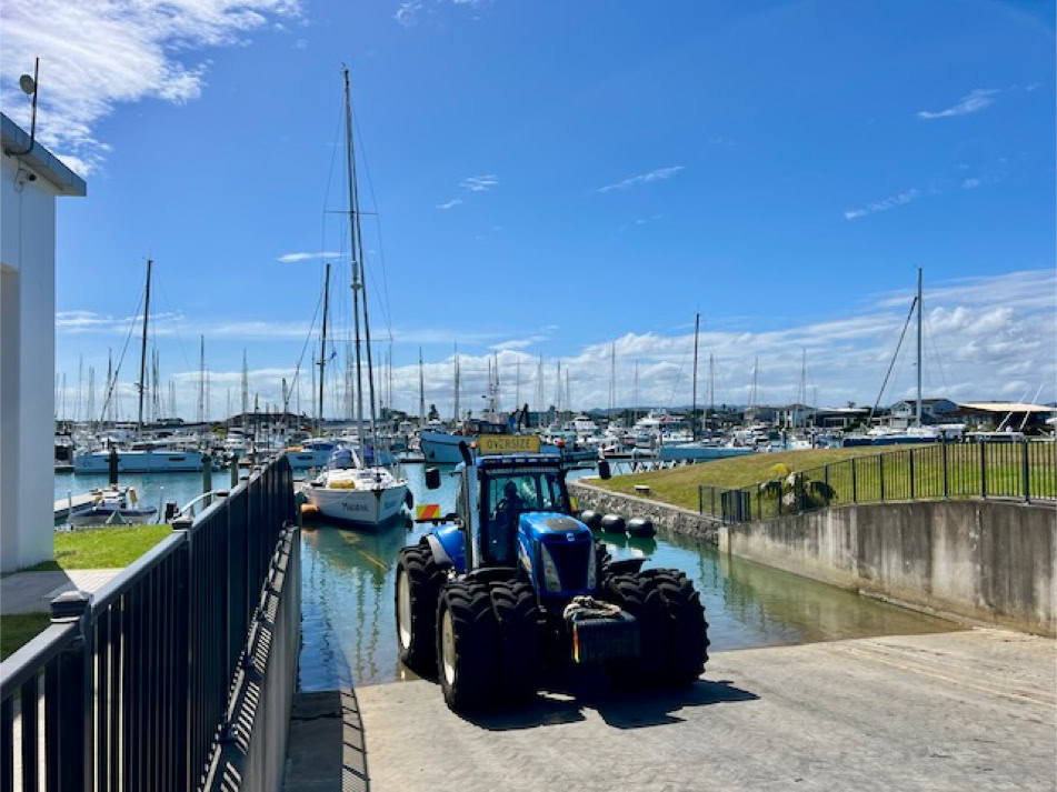 Wie bei allen Seglern fallen auch bei unserem Boot Reparaturen an. Wir müssen unbedingt die Stopfbuchse der Welle tauschen. Dafür wird unsere Manatee einmal an Land geholt. Das im Voraus bestellte Ersatzteil liegt bereit und kann gleich eingebaut werden. In den frühen Morgenstunden schwimmt das Boot wieder im Wasser und ist startklar für die Weiterfahrt nach Whangarei.