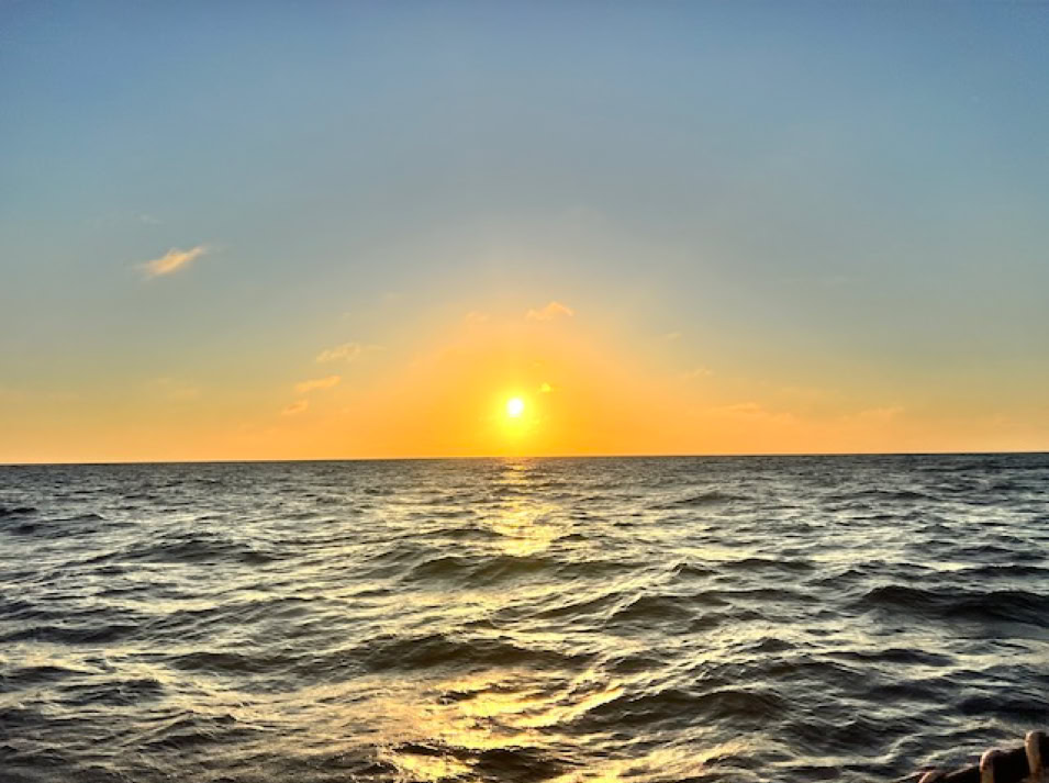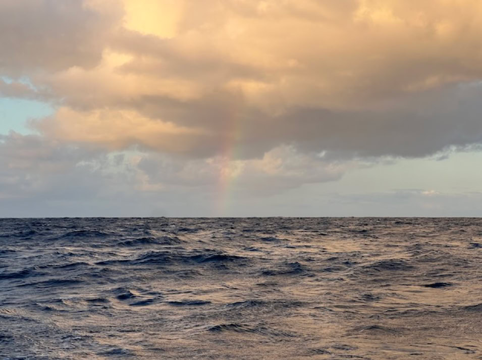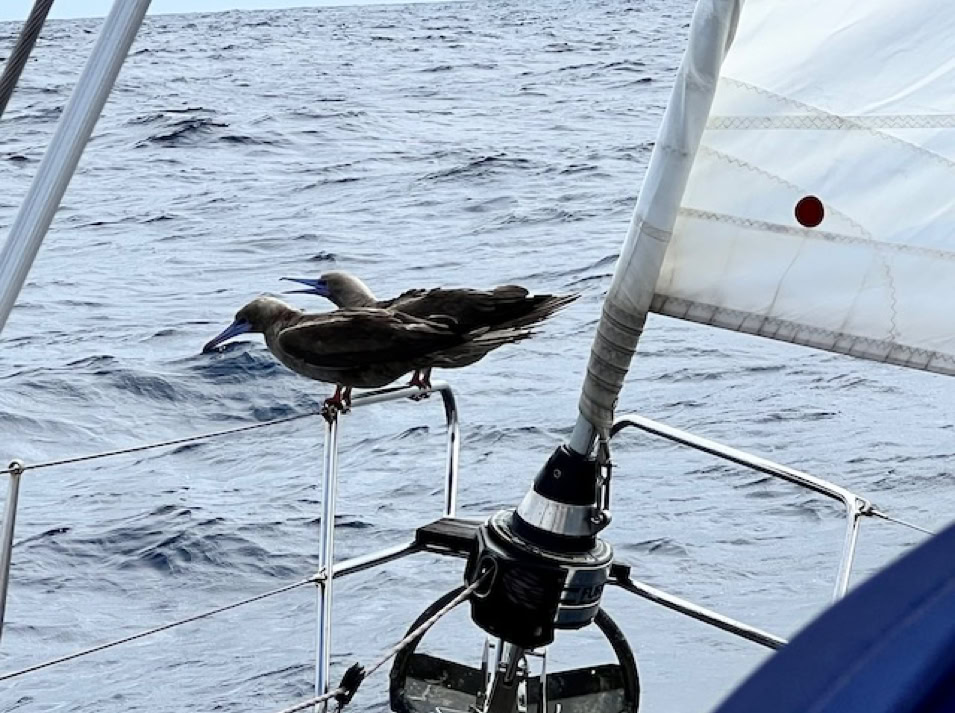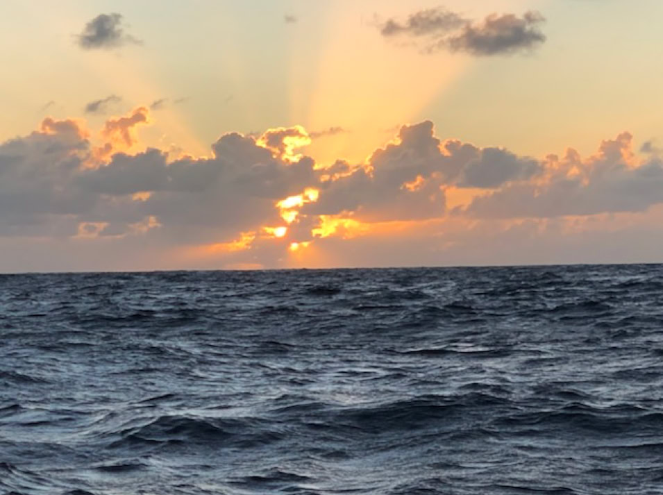 Wir kommen gut voran. Die Tage sind kurzweilig und zu unserer täglichen Bootsroutine gibt es immer etwas zu tun. Zur Entspannung gibt es Hörbücher, wir lesen, zeichnen oder schauen einfach den Wellen und Wolken zu. Die Angel kommt zum Einsatz und bald hängt auch der erste Mahi-Mahi am Haken. Eine willkommene Abwechslung in unserer Bordküche.