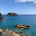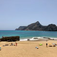 Porto Santo präsentiert sich in seiner kargen Schönheit. Berge aus Lavagestein und trockene Wiesen prägen die Landschaft. Eingebettet im blauen Atlantik punktet die Insel mit seinem langen goldgelben Sandstrand. Weshalb sie auch den Beinamen die „Goldenen Insel“ trägt.
