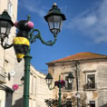 Erste Anlaufstelle ist das Zentrum der Stadt. Die schmalen Straßen sind geschmückt mit Weihnachtsdekorationen, großen künstlichen Blumen und Bienen. Wir kennen die Bedeutung nicht, finden es aber interessant und es passt in das Straßenbild. Der Ort versprüht einen bezaubernden Charme und es macht uns Spaß das Städtchen zu erkunden. Wir gönnen uns ein Mittagessen direkt am Markt und überbrücken in dieser Zeit einen ordentlichen Regenschauer.