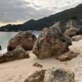 Ein wunderschöner großer Strand gesäumt von grünem Gebirge erwartet uns. Wir laufen am Wasser entlang und sind fasziniert von den Felssteinen, welche von den Bergen ins Meer rollten und dort wunderschöne Formationen hinterlassen. Wir atmen die frische Meeresluft und lassen es uns gut gehen.