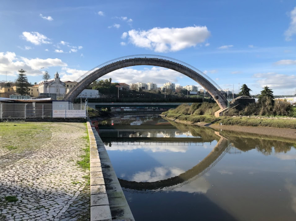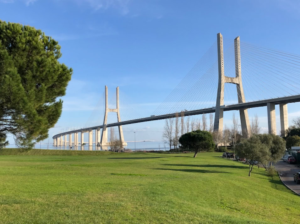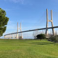 Das Mietauto ist abgegeben und wir schnappen uns unsere Räder, fahren entlang des Tejo bis zur Flussmündung des Trancão, einem Nebenfluss, um noch ein Stück an dessen Ufer entlang zu radeln. Auf dem Rückweg halten wir unter der Ponte Vasco da Gama und entdecken die Brücke mal in einer neuen Perspektive. Das Gebiet unter der Brücke wird von einem großen Skaterpark und vielen Grünanlagen geprägt. Es ist schön hier.