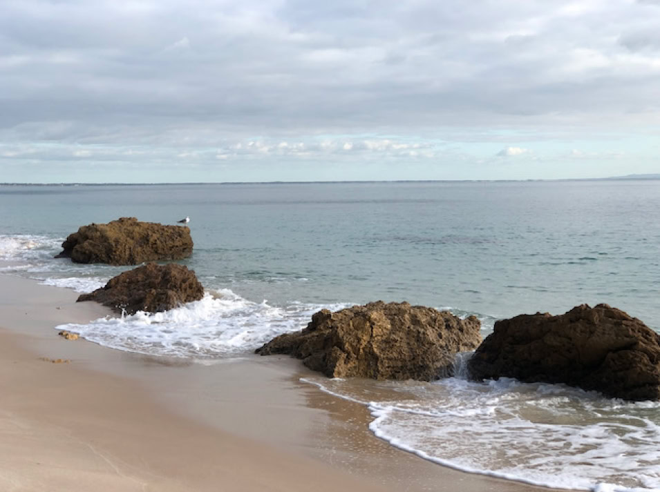Sonne, Wolken und Regen wechseln sich ab. Die Wellen an diesem Tag sind zwar nicht außergewöhnlich hoch, aber trotzdem großartig. Wir stehen am Strand, sehen das tosende Wasser auf uns zukommen und sind beeindruckt, atemlos, sprachlos. Wir beobachten das spektakuläre Schauspiel von unterschiedlichen Aussichtspunkten und sind einfach nur glücklich.