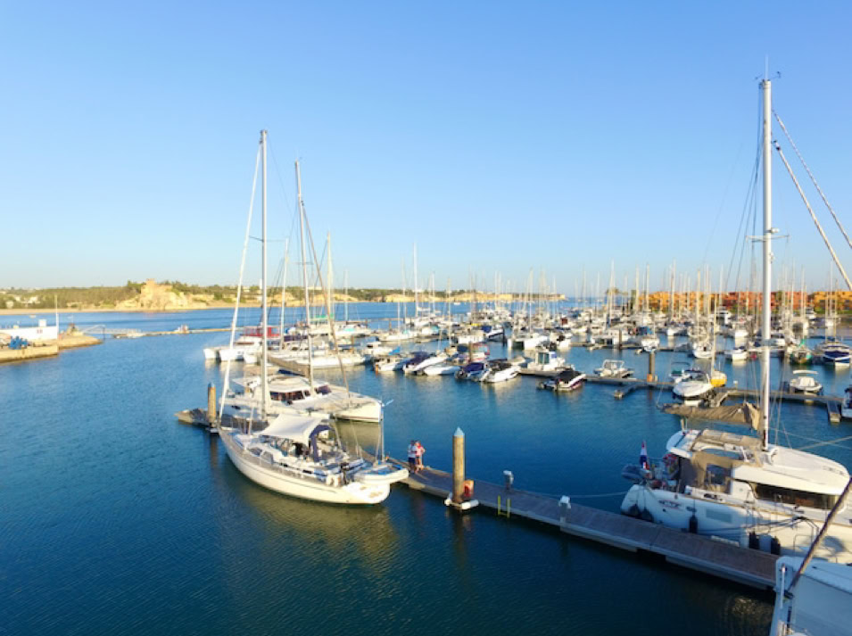 Es ist soweit, unsere Zeit in Lagos ist beendet und wir fahren den kurzen Abschnitt entlang der Küste in die Bucht vor Portimão. Wir lassen den Anker zwischen vielen anderen Booten fallen und freuen uns über die Ansicht der Küste mit seinen roten Felsen. Auf der gegenüberliegenden Seite leuchtet die Hafeneinfahrt mit ihren gelb orangefarbenen Gebäuden.