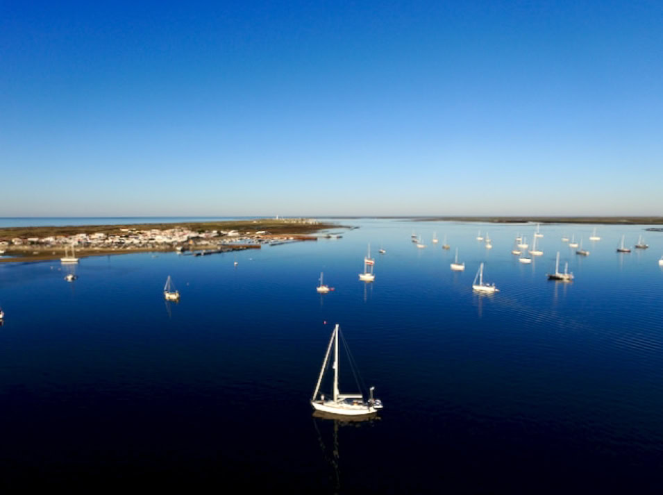 In der Lagune vor Culatra erwartet uns ein großes Ankerfeld. Die SY Malu und SY Men Göe stehen bereits hier und winken uns zu. Wir lassen den Anker fallen und die neuen Eindrücke auf uns wirken.