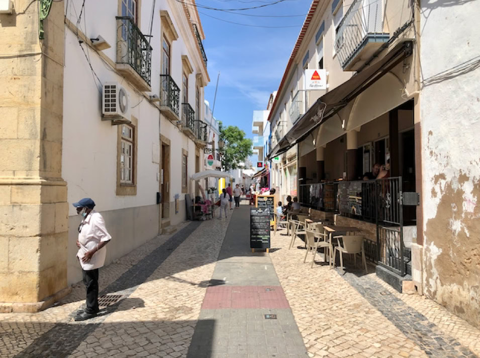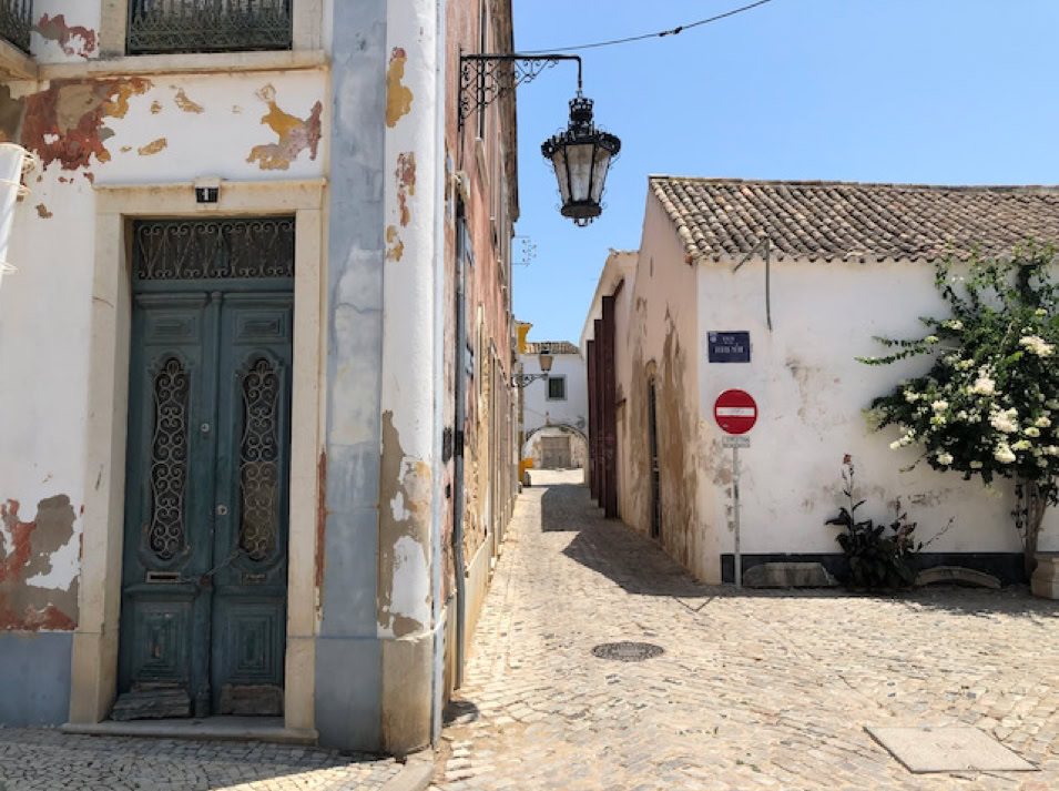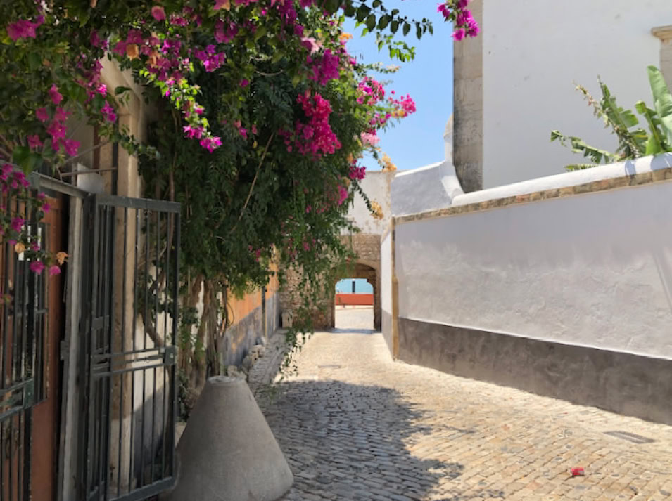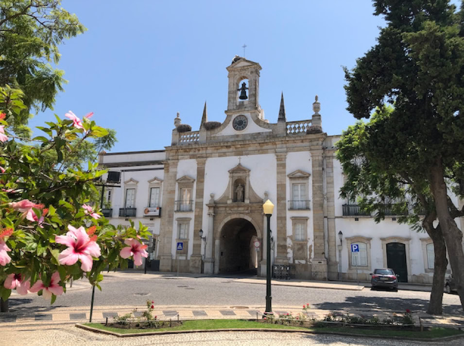 Es geht mit der Fähre nach Olhão, dann zum Bahnhof. Da stehen wir nun und schauen auf den Fahrplan. Dieser wurde für heute geändert und bis zur nächsten Abfahrt ist über eine Stunde Zeit. Kurzentschlossen fahren wir mit Uber weiter. Bevor es in die Altstadt geht, laufen wir durch einen imposanten Torbogen der Stadtmauer und selbst auf dem befindet sich ein Storchennest wie auf allen Türmen und Masten in der Algarve. Die Altstadt Faros verzaubert uns mit ihren Gassen und ihrem charmanten Flair.
